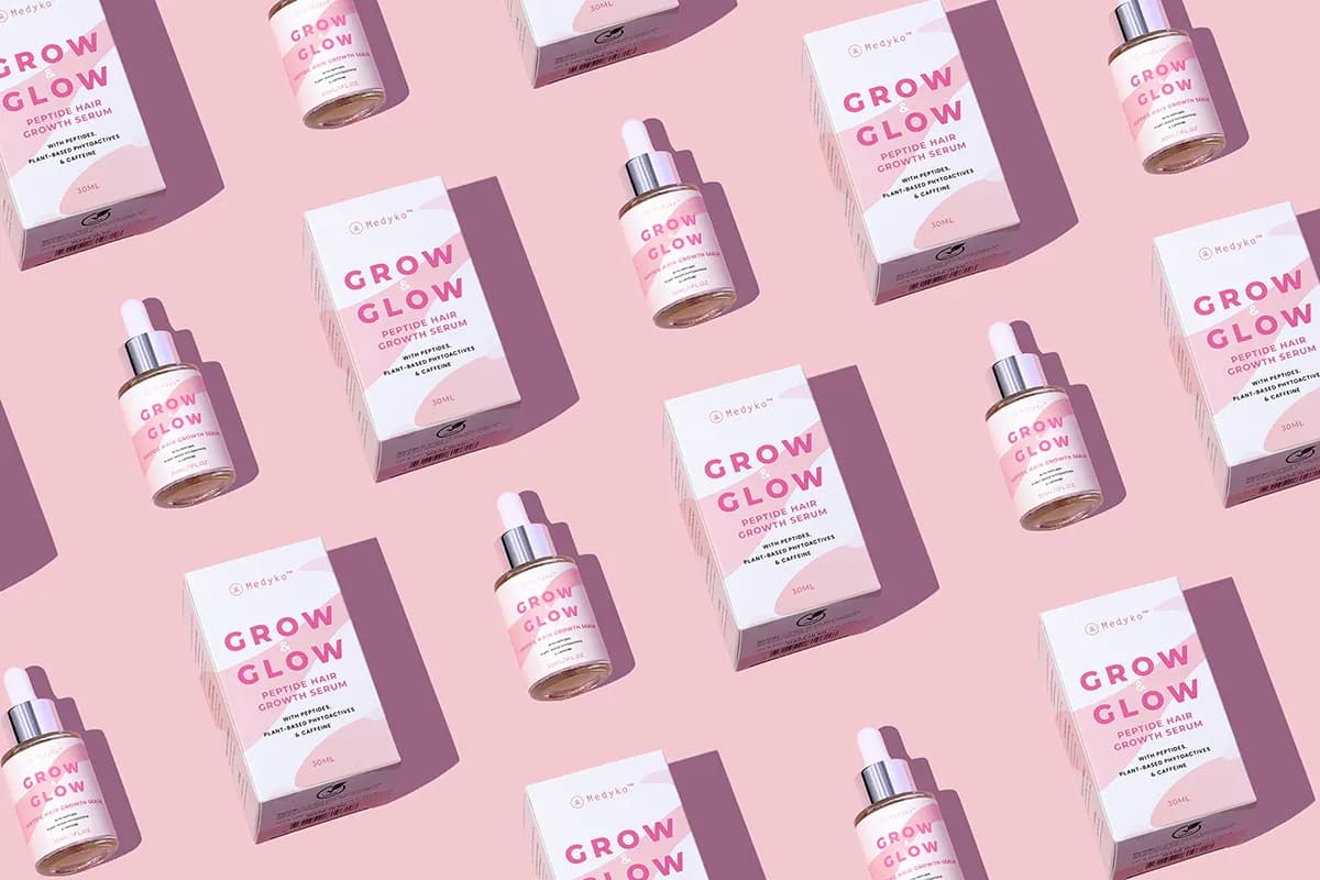 Grow & Glow serum združuje moč naravnih peptidov in rastlinskih izvlečkov za blokiranje DHT hormona, ki povzroča izpadanje las.