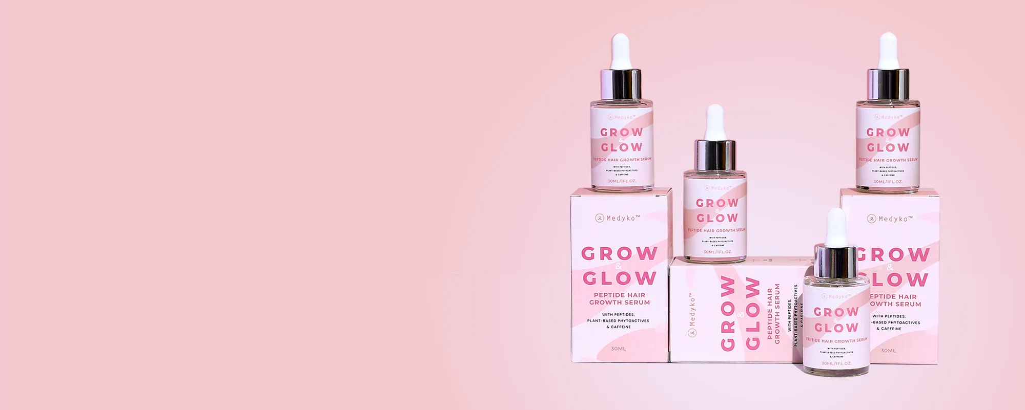 Grow & Glow serum združuje moč naravnih peptidov in rastlinskih izvlečkov za blokiranje DHT hormona, ki povzroča izpadanje las.